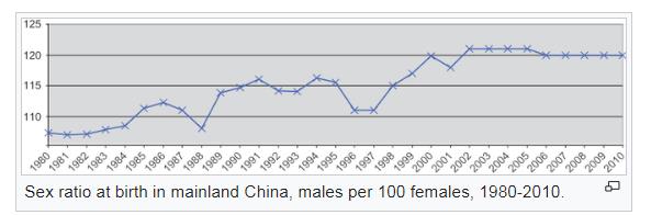 There is a gender imbalance in China that has contributed significantly to the “One Child Policy”. Because of a few decades of enforced population control, there is an imbalanced ratio of men and woman. Women were largely discarded during this policy because traditional China preferred males and unfortunately this has created an unnaturally skewed ratio of males compared to females. There are more men in China than there are woman.